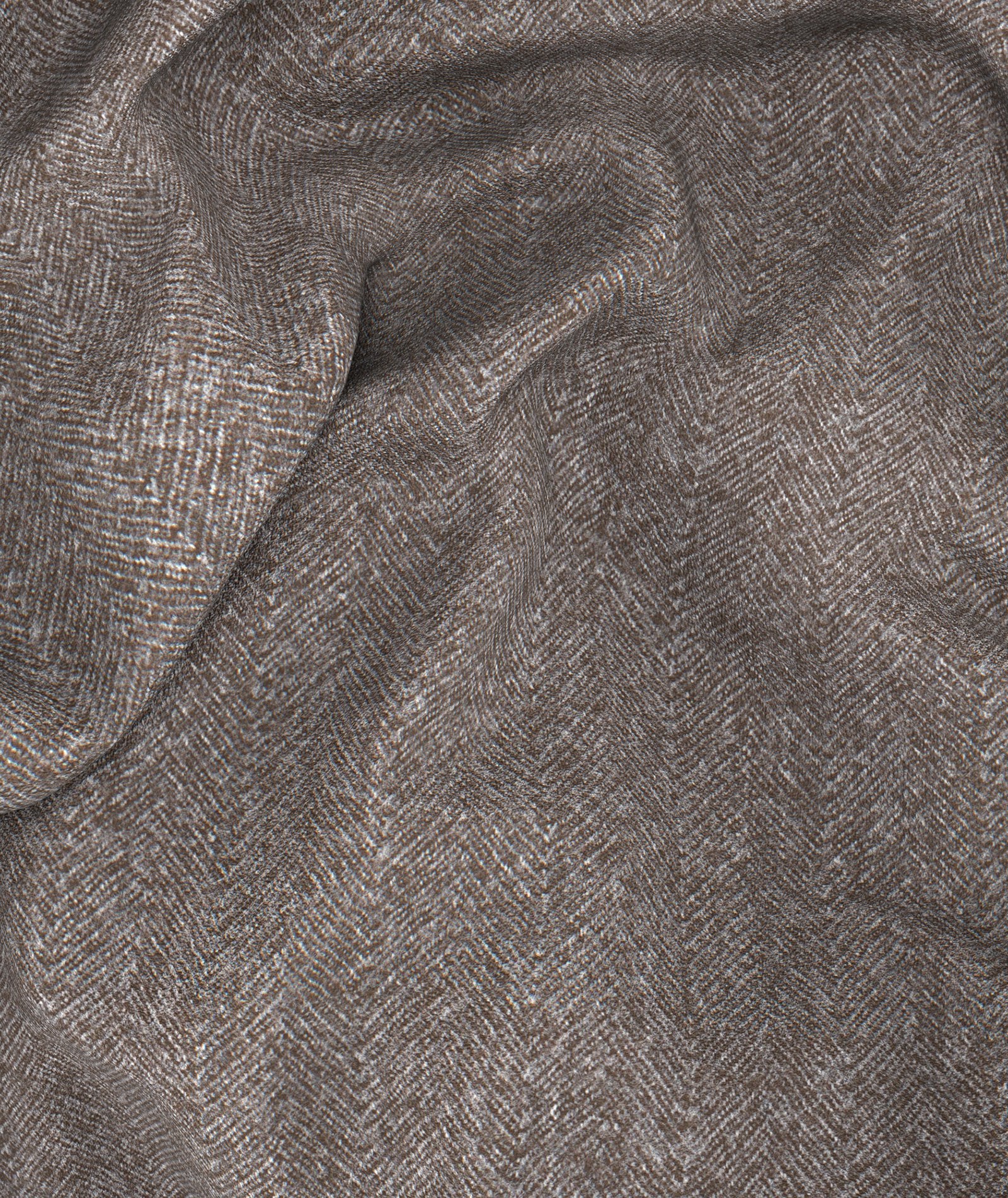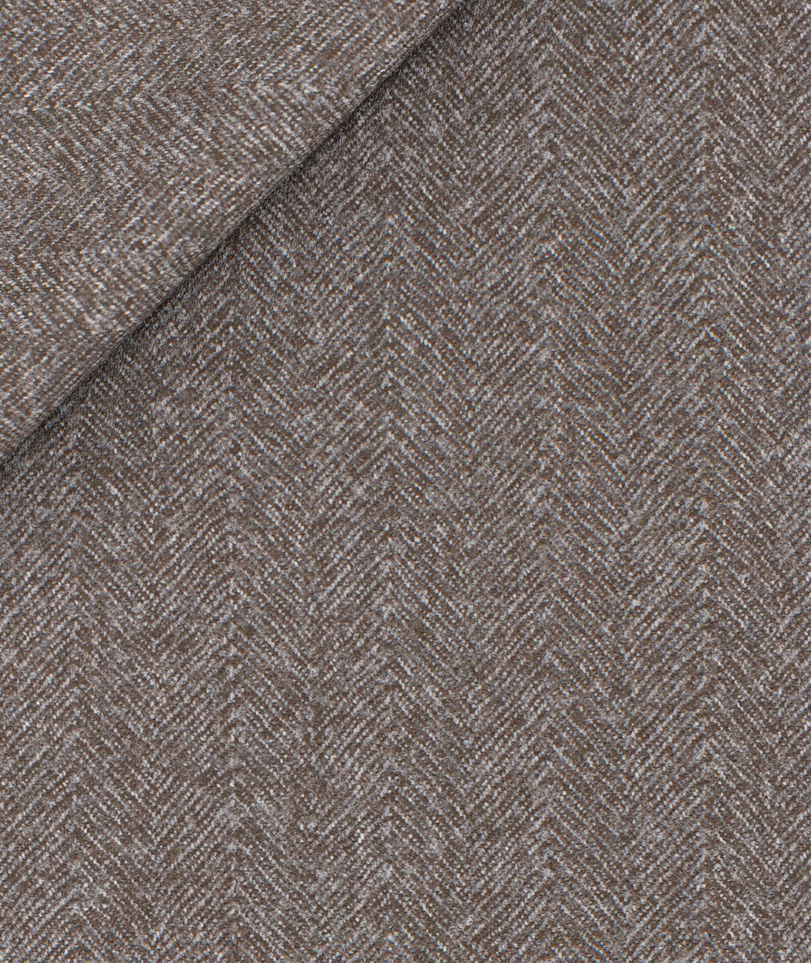 Este blazer a medida hecho en Italia con un tejido de lana de Vitale Barberis Canonico. Está fabricado al 100% en franela cardada de lana, presentando un patrón de espiga en tonos grises y marrones. Es una prenda cálida y envolvente, con un aspecto invernal y un toque británico que expresa una elegancia atemporal. Perfecto para combinar con una camisa en ocasiones formales.