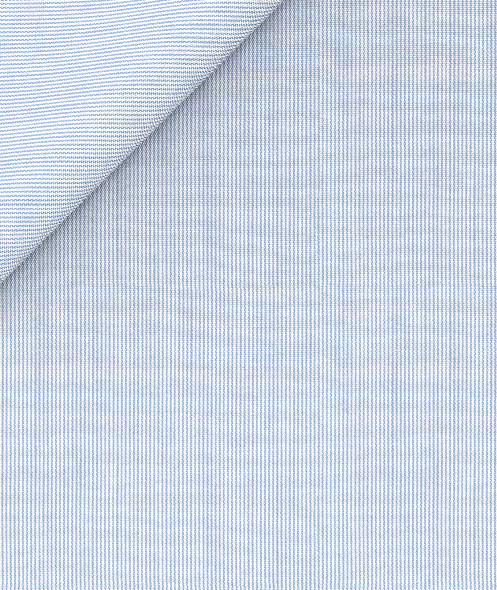 Esta camisa a medida está confeccionada en Italia con un tejido de algodón azul claro de la algodonera Alfatex. Fabricada en algodón 100%, es cómoda, versátil y ligera. El estampado de punto de alfiler forma una densa microraya vertical que la hace elegante y versátil, perfecta para ocasiones formales y de negocios en todas las estaciones del año.