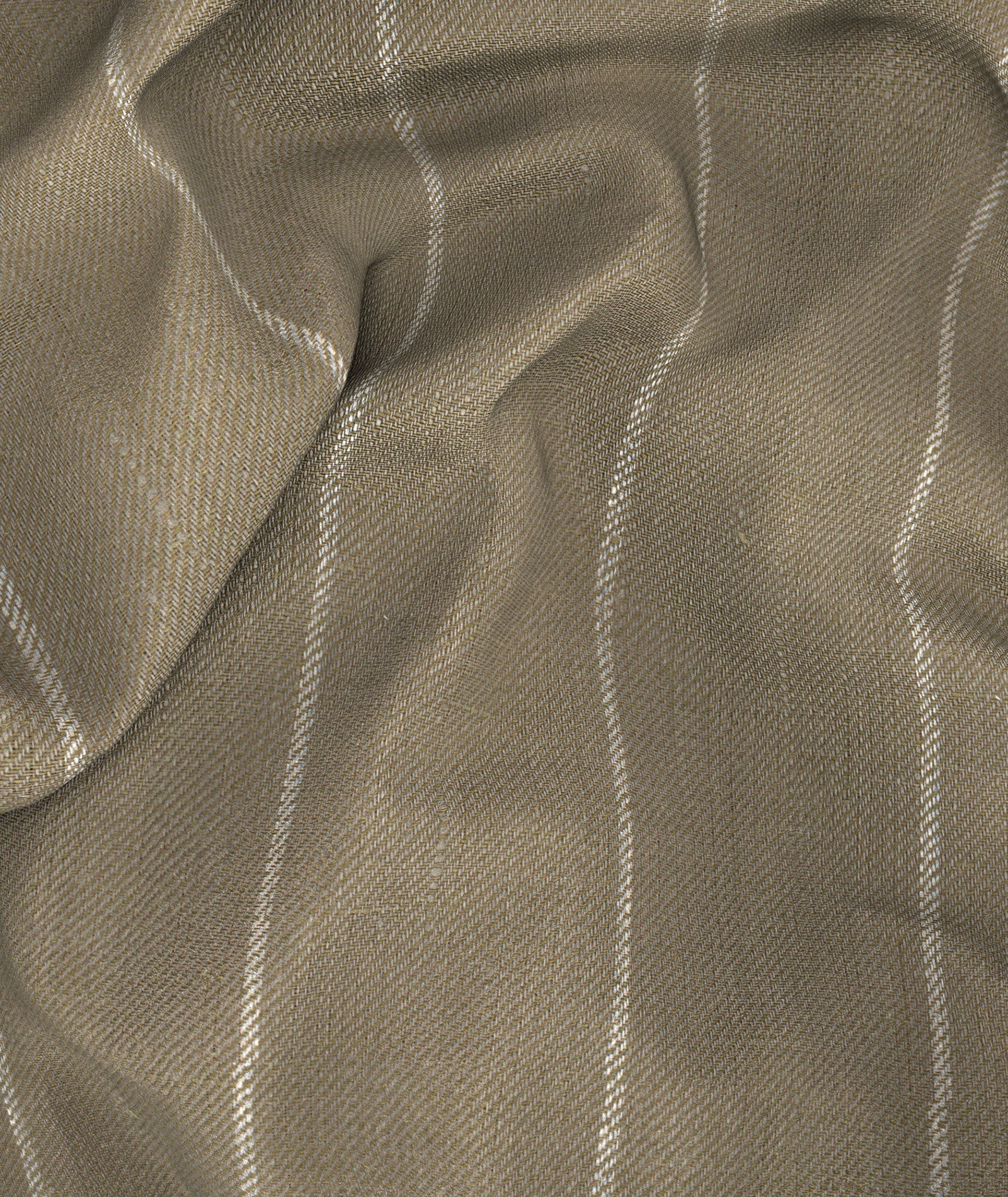 Chaleco confeccionado A Medida en Italia con una tela de 100% lino de la fábrica de lana Ermenegildo Zegna. En tonos verde salvia, presenta una delicada raya diplomática blanca que confiere a la prenda una elegancia estival atemporal. Perfecto para la temporada cálida, gracias a las propiedades transpirables y termorreguladoras del lino.