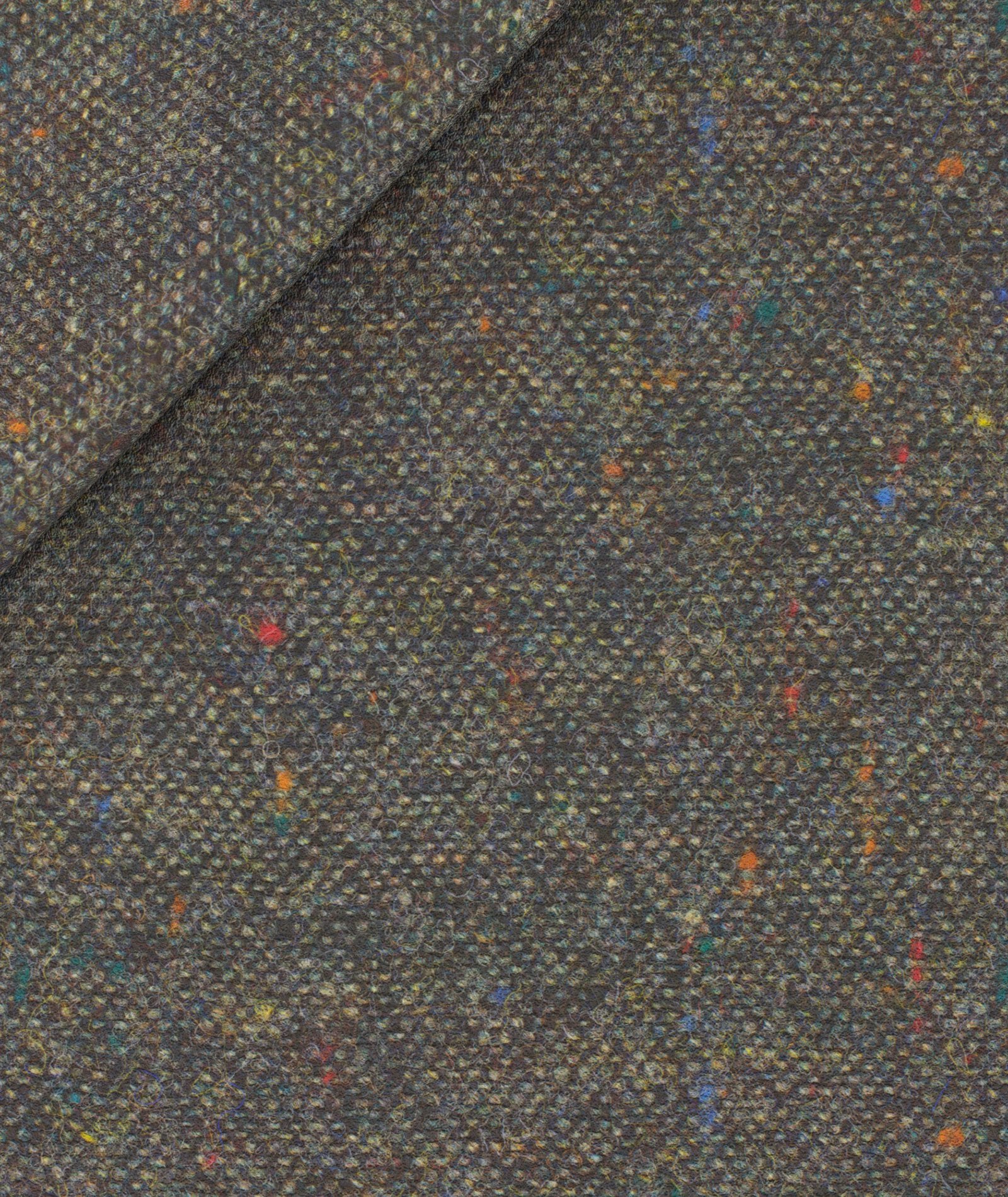 Este chaleco a medida está hecho con un tejido de lana de la tejeduría Bottoli. Está fabricado al 100% en lana Shetland, que tiene un aspecto característico y consistente con una textura más áspera que la lana merino, lo que le confiere un estilo británico atemporal y sofisticado. El proceso de knickerbocker, que implica la adición de hilos de lana de otros colores, crea un efecto multicolor que ilumina la base verde. El resultado es una prenda refinada perfecta para ocasiones informales.