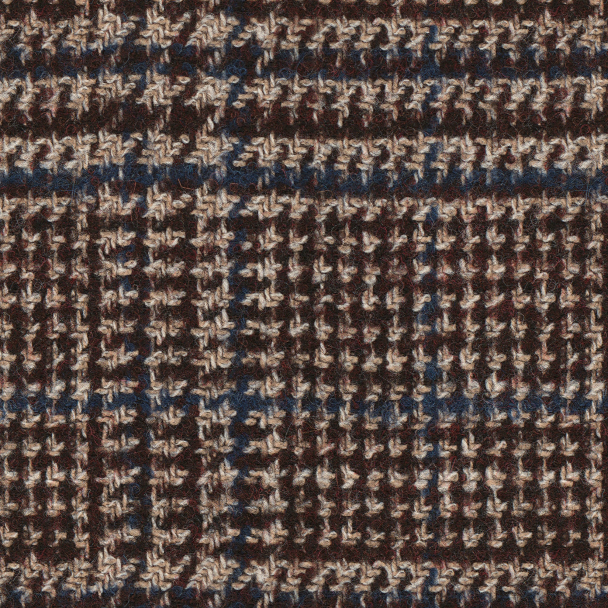 Chaqueta realizada A medida con un tejido de lana y baby alpaca de Ferla, una excelencia del Made in Italy. El tejido es suave, cálido y envolvente al tacto y se caracteriza por un estampado Príncipe de Galles marrón con toques beis y overcheck azul claro. Una prenda de estilo invernal, para llevar sobre un jersey para el tiempo libre.