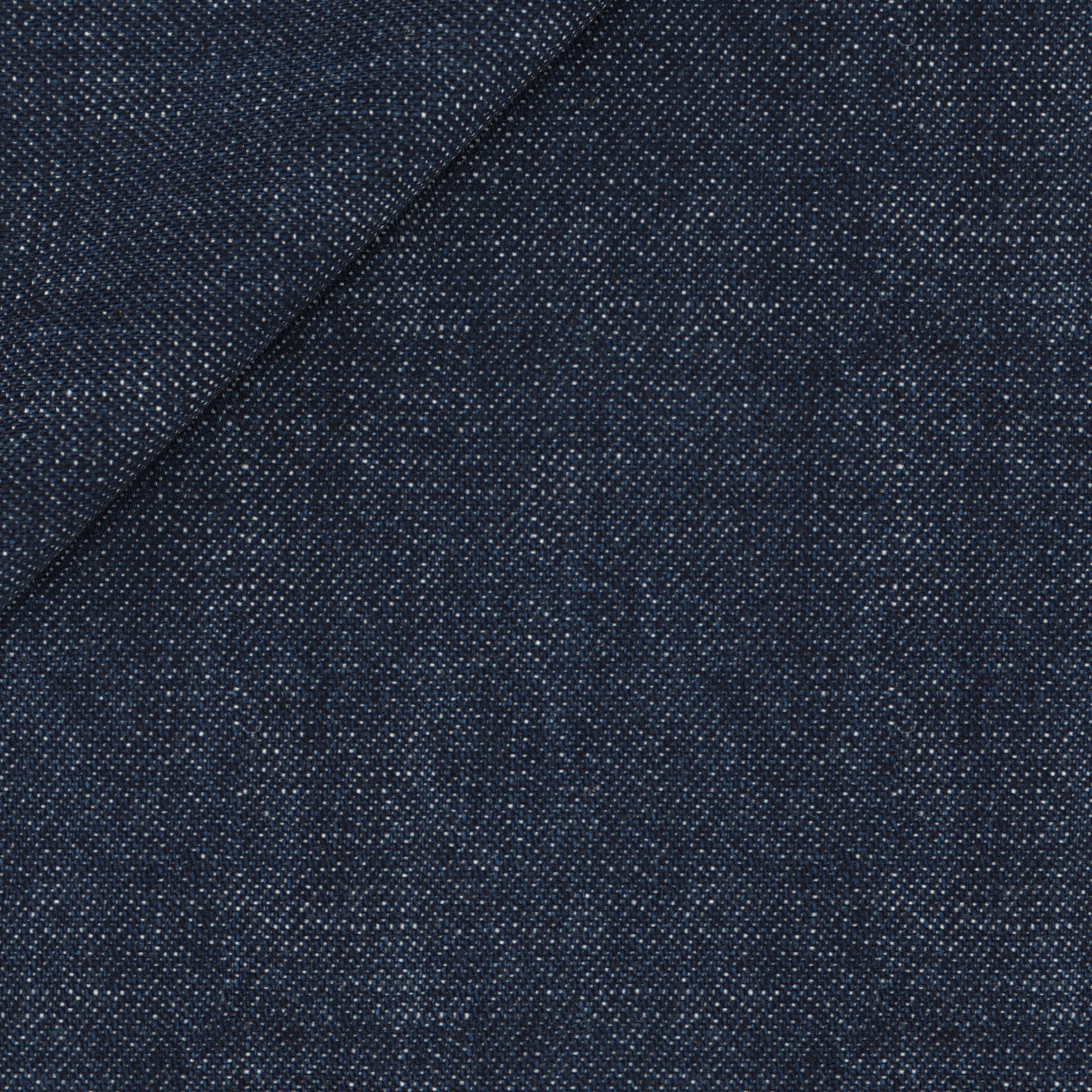 Traje realizado A medida en denim del fabricante italiano Albini. Un tejido con un look informal icónico, reinterpretado en clave formal para crear una prenda para llevar en el tiempo libre, pero con un toque de elegancia.