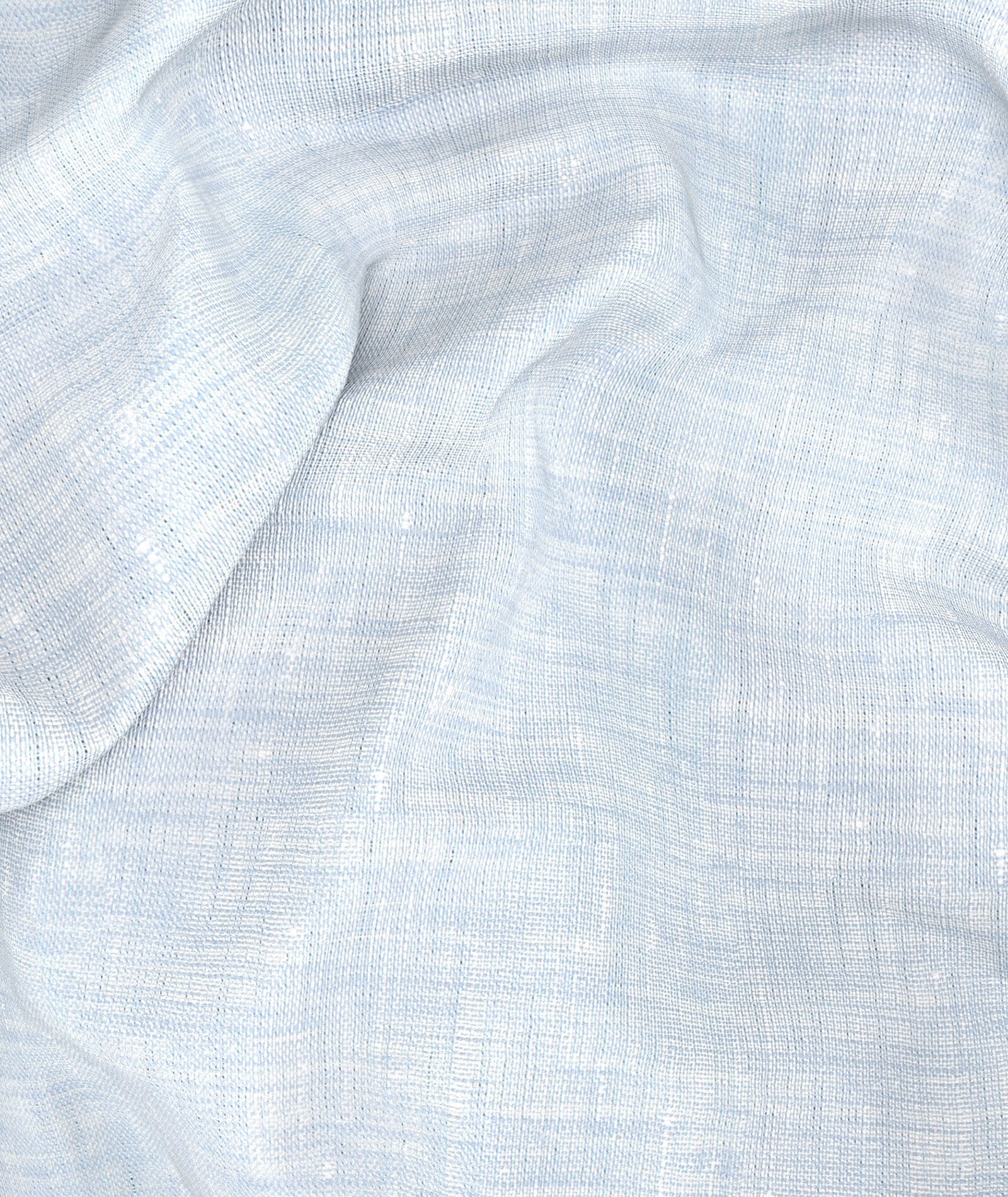 Cette chemise sur mesure est réalisée en Italie avec un tissu bleu clair en Zéphir de la filature de coton Albini. En 100% Lin, elle est fraîche et respirante mais aussi confortable à endosser, grâce à l’effet stretch naturel appliqué au tissu. La teinture en fil donne un aspect délavé à la pièce, pour une tenue informelle et décontractée, parfaite pour le temps libre au printemps et en été.