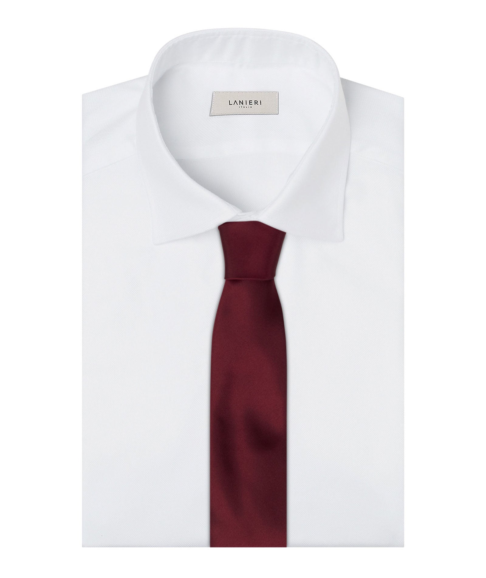 Cravate confectionnée en Italie en satin de soie bordeaux uni. Un accessoire raffiné, également parfait avec les costumes de cérémonie.
