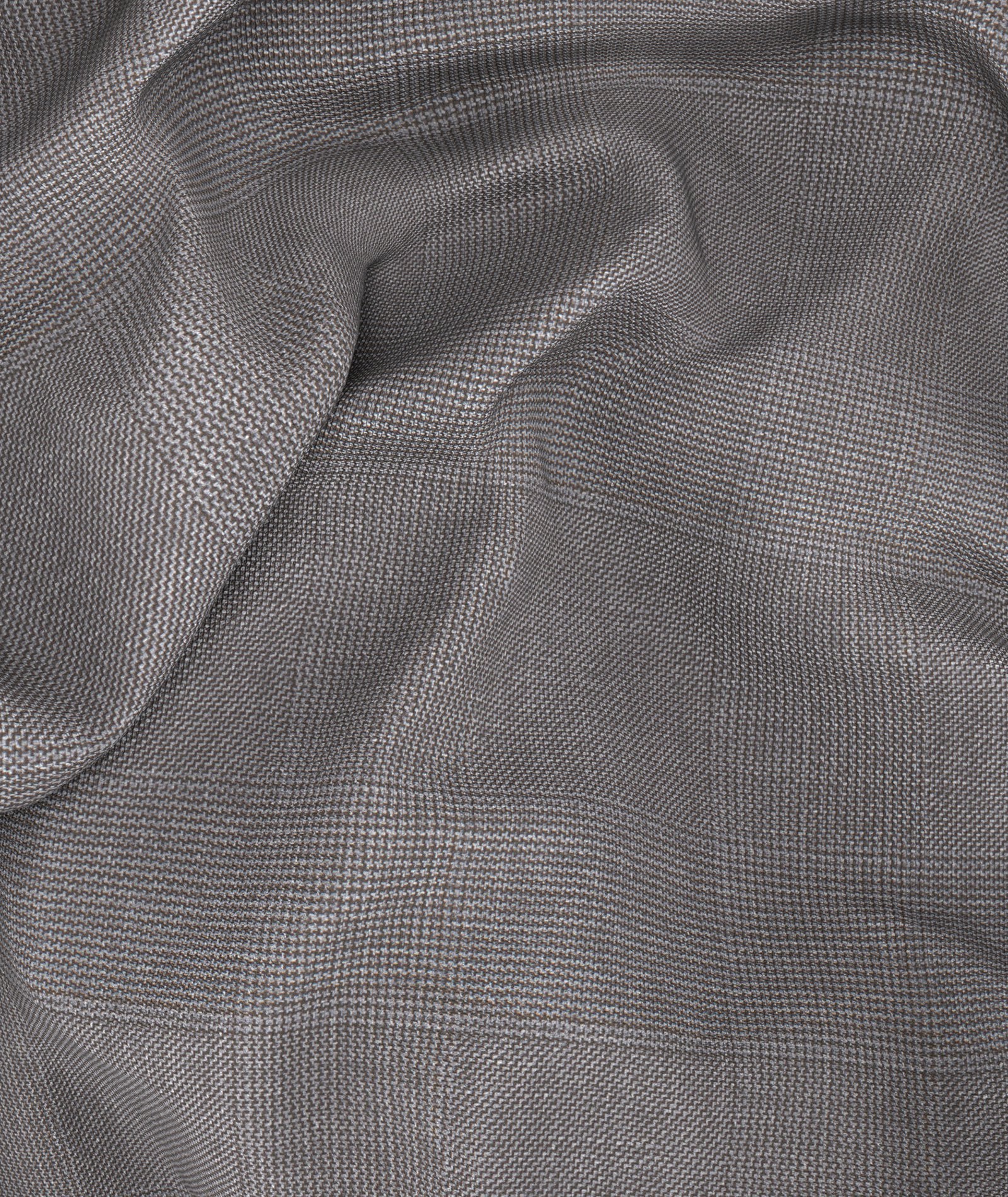 Tessuto Loro Piana della linea Tasmanian in pura lana Super 170's, tra le più pregiate e fini. Nei toni del grigio con la classica fantasia Principe di Galles, una scelta ideale per un tocco di inconfondibile eleganza nei look formali.