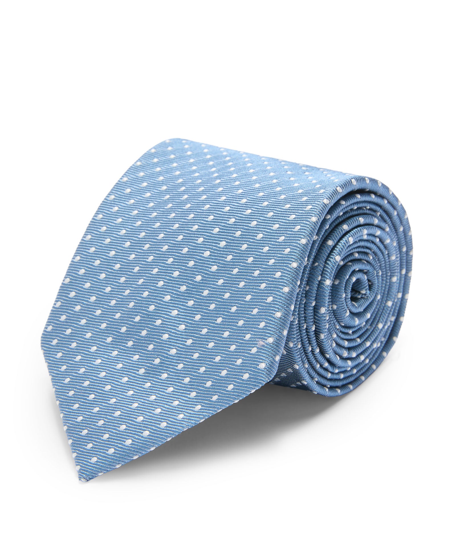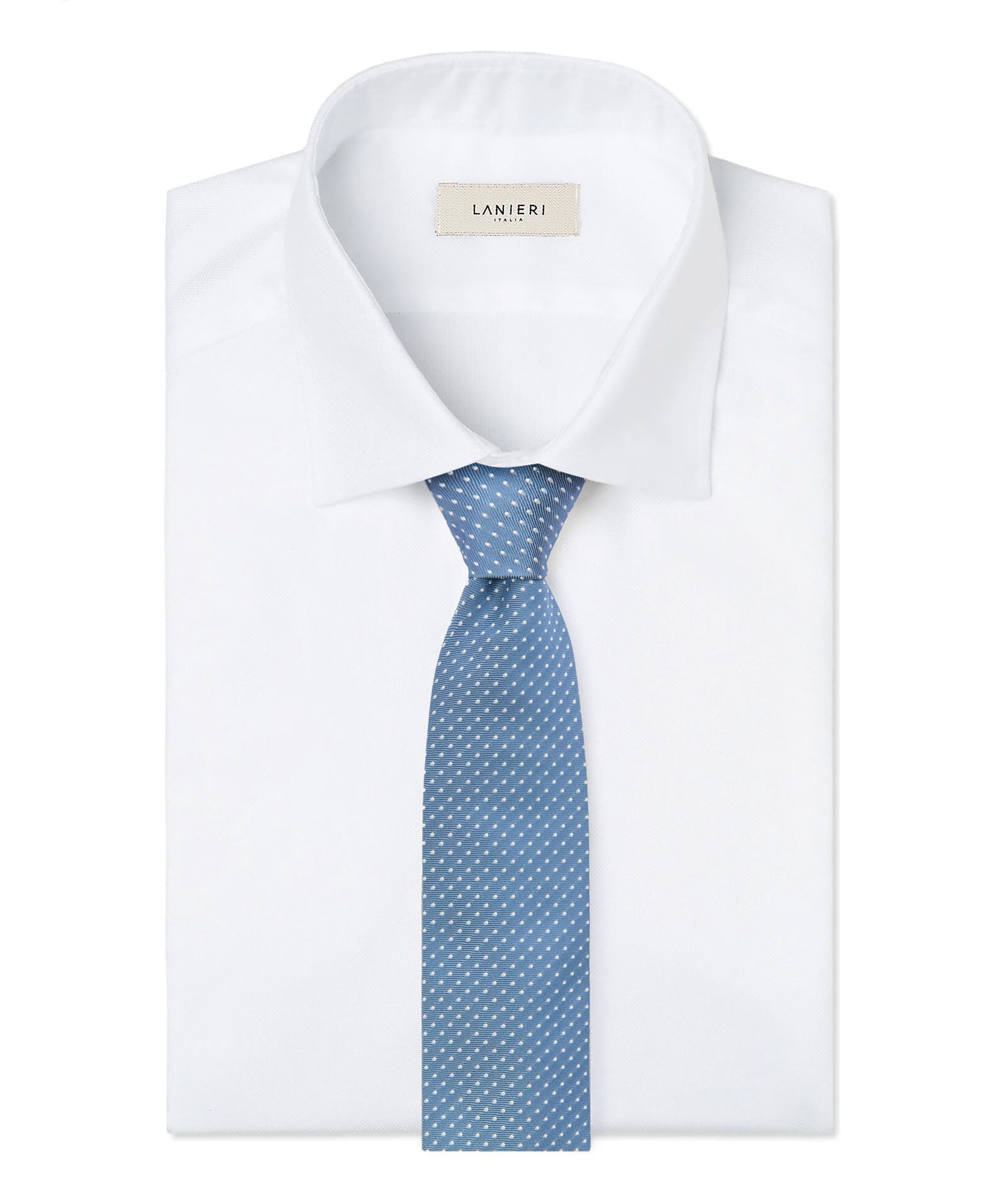 Questa cravatta è realizzata in 100% jacquard di seta in Italia. Elegante, formale e raffinata, presenta una fantasia a pois azzurra che la rende un dettaglio di stile irrinunciabile per le occasioni più formali oppure per essere indossata in ufficio. Le cravatte Lanieri sono personalizzabili in modo da creare uno stile unico e personale.