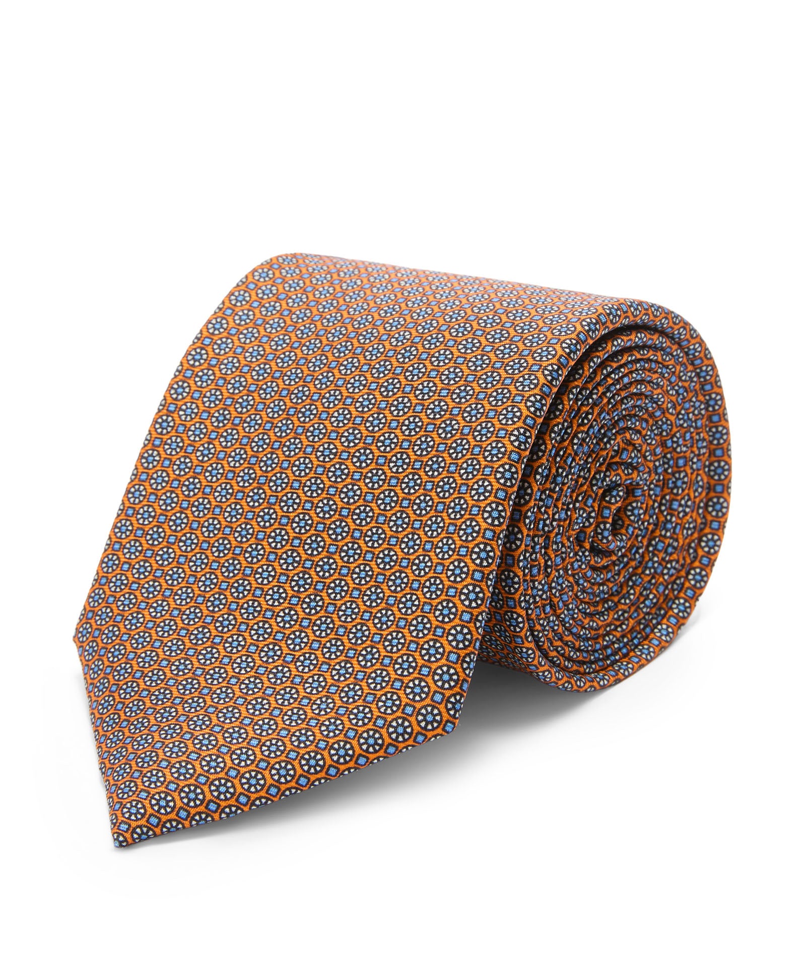 Cravatta in seta stampa fiore arancione