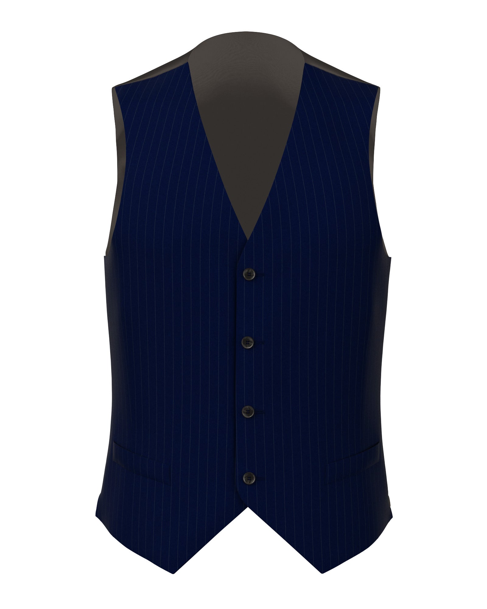 Gilet appartenente alla linea Signature, massima espressione della sartorialità italiana, con asole cucite a mano. Questo capo è realizzato in Italia con un tessuto in lana 150's del lanificio Reda nei toni classici del blu con fantasia gessata. Morbido al tatto, resistente e adatto all'uso quotidiano, presenta un peso medio adatto a tutte le stagioni.