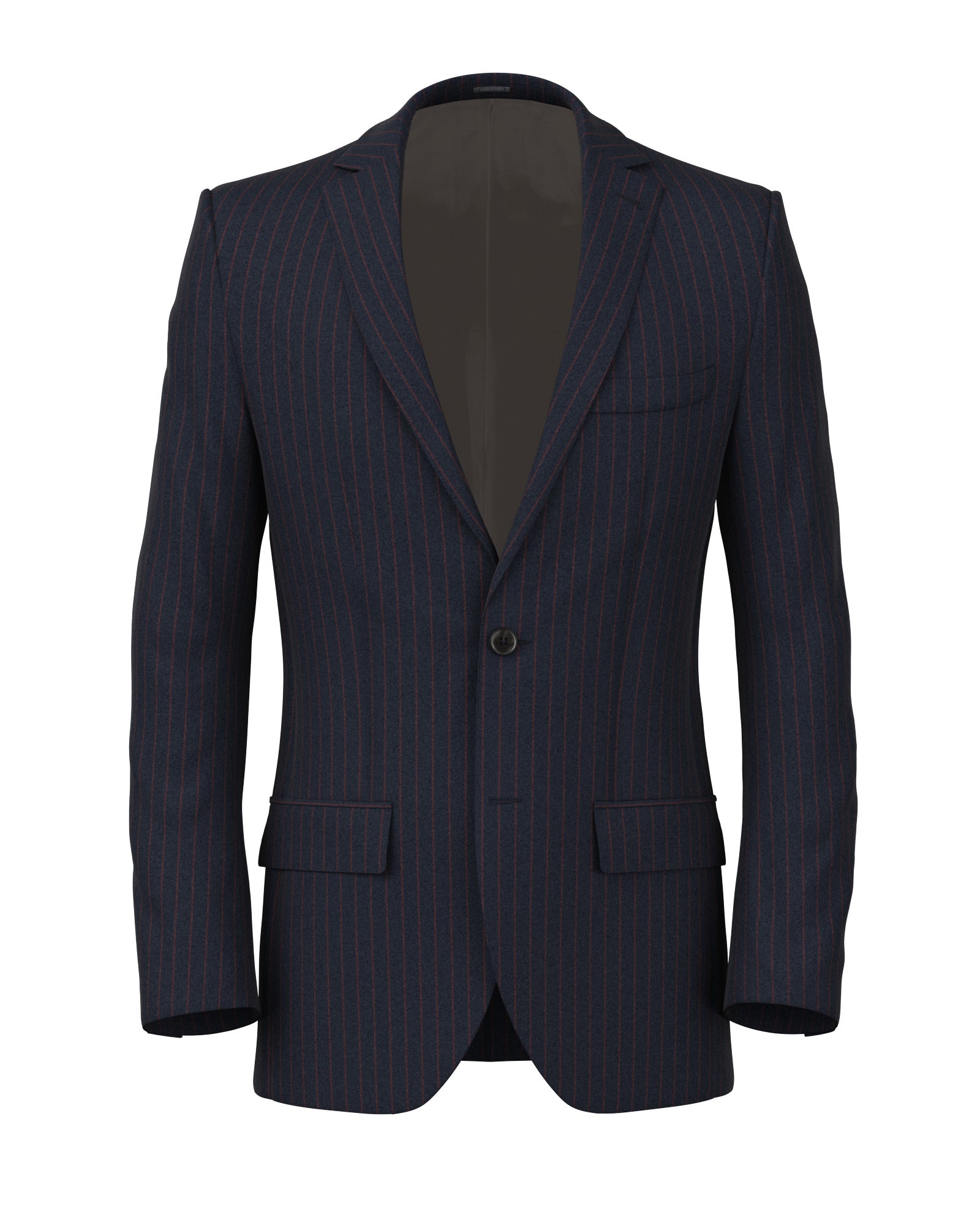 Made-to-Measure jacket crafted in wool flannel from the Reda mill. In classic blue tones, it is enlivened by a red chalkstripe that adds a bright touch to the garment. To wear in winter, on colder days, with a shirt and tie or with a turtleneck for a more informal touch, even at the office.