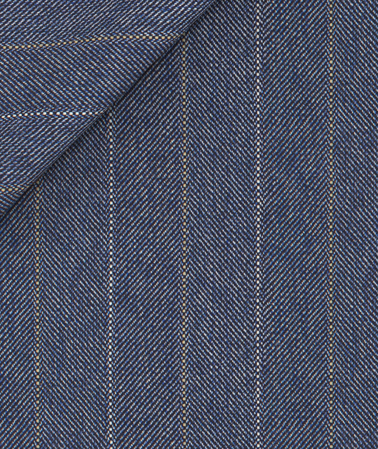 Made-to-measure men’s jacket in blue melange pinstripe wool and tencel twill