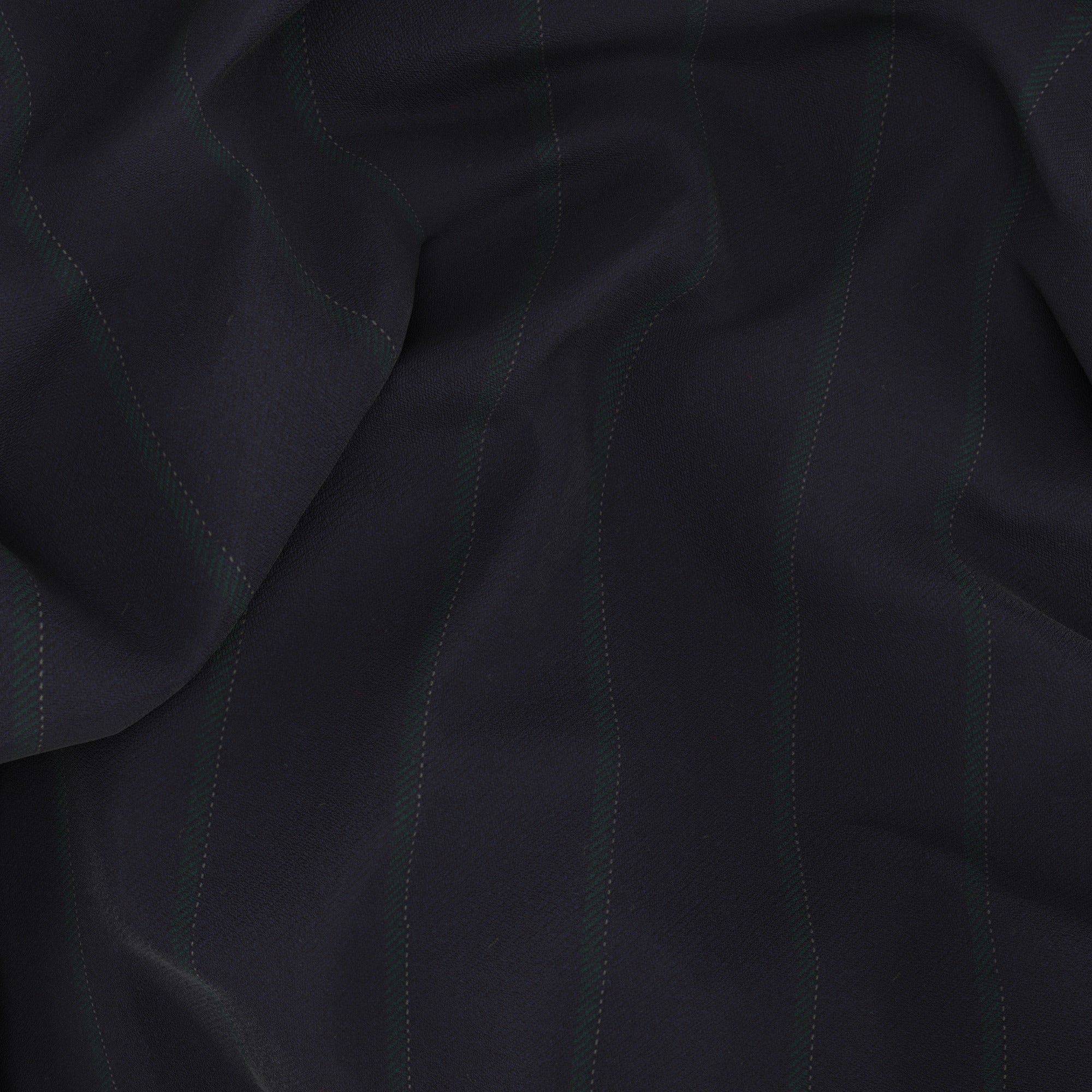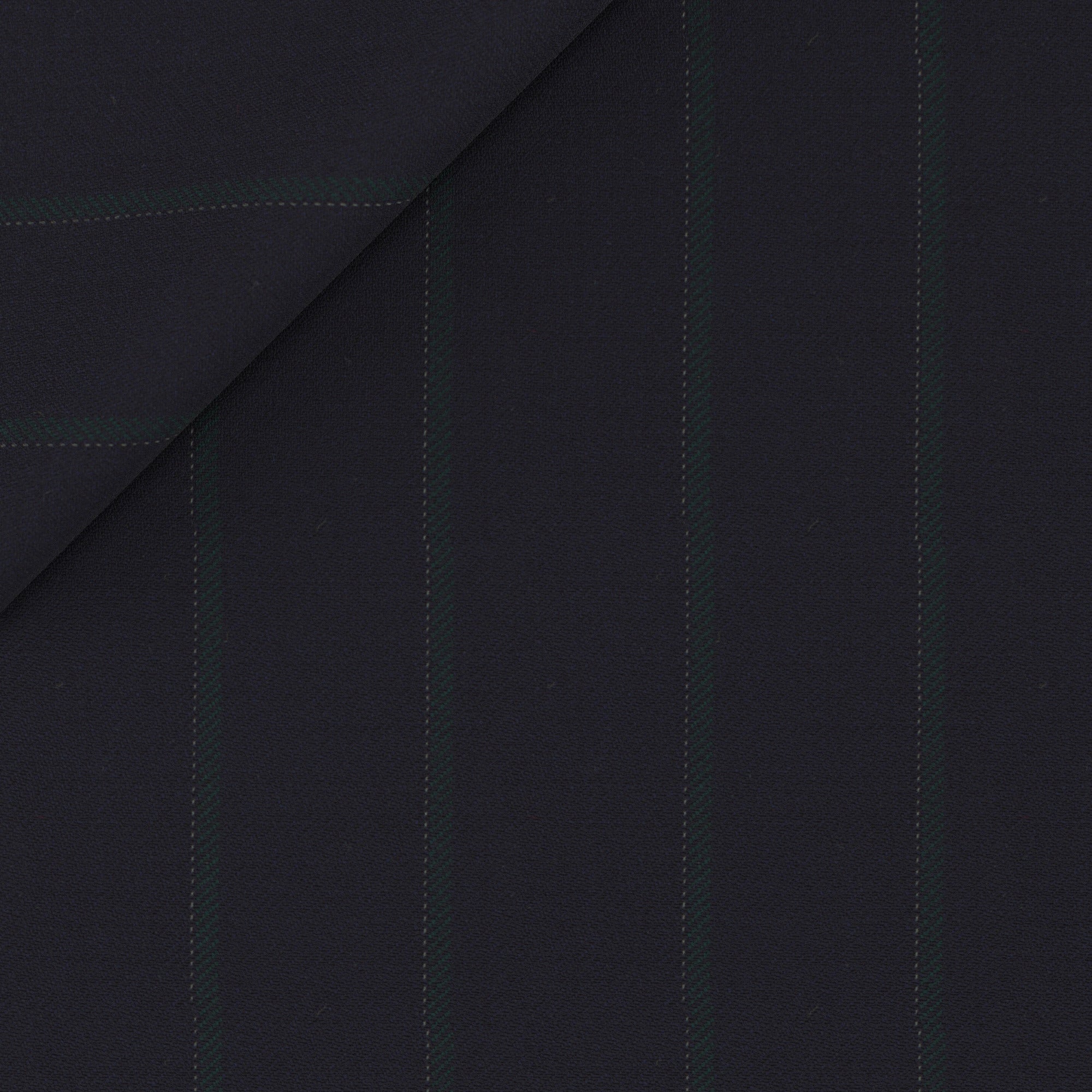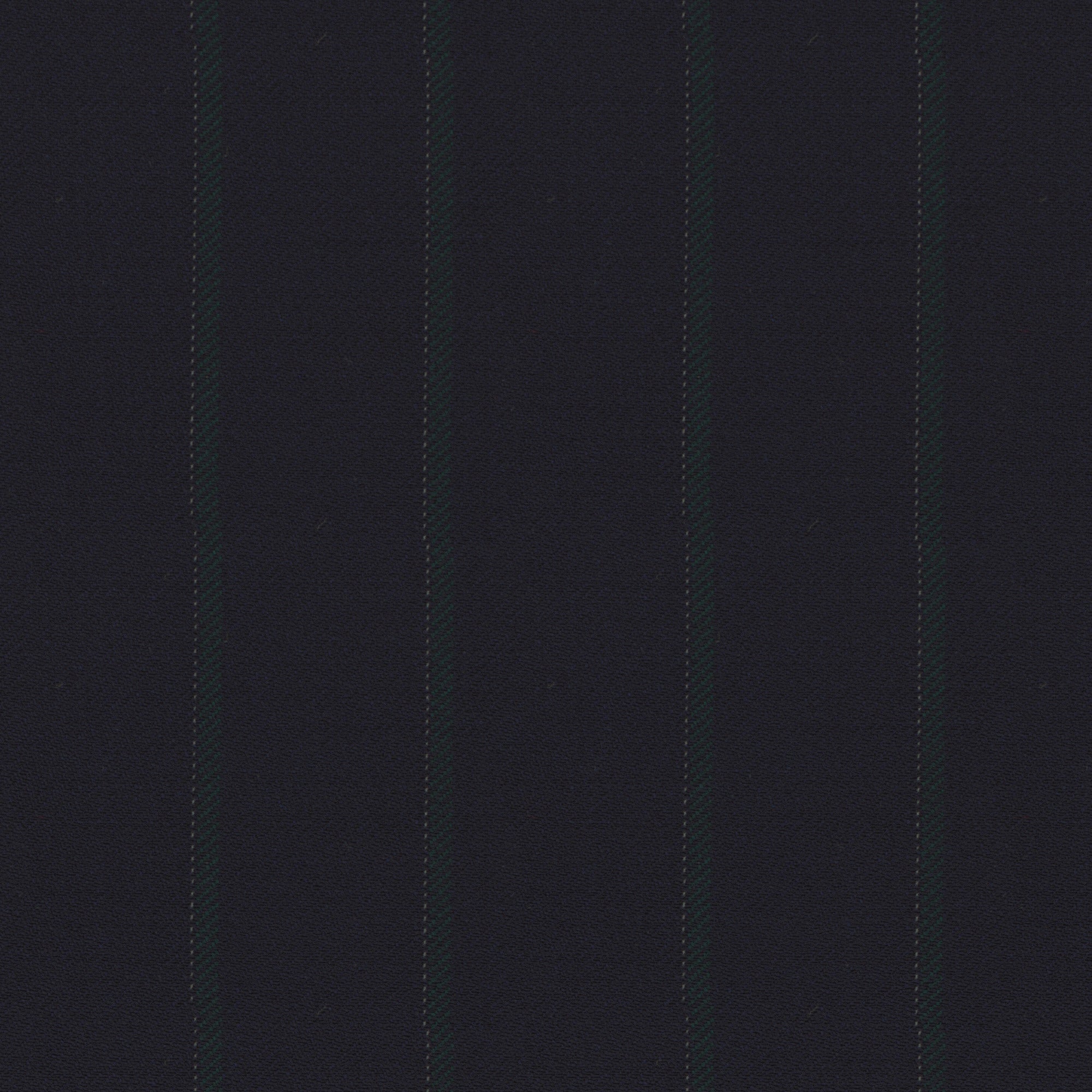 Made-to-Measure suit crafted from a wool fabric by the Italian mill Vitale Barberis Canonico. In navy blue tones, it features a very refined green chalkstripe that gives a contemporary touch to the garment. A medium-weight fabric, to wear year-round for work occasions.